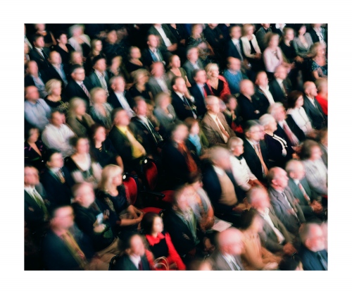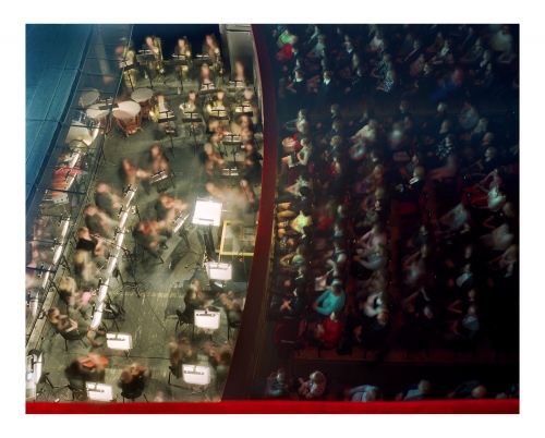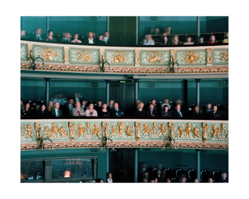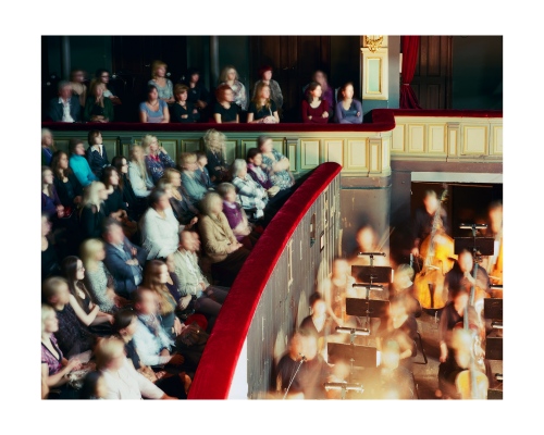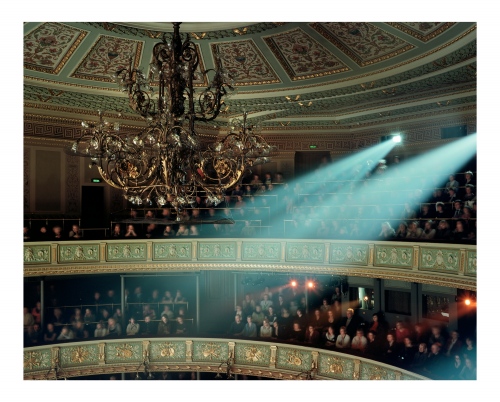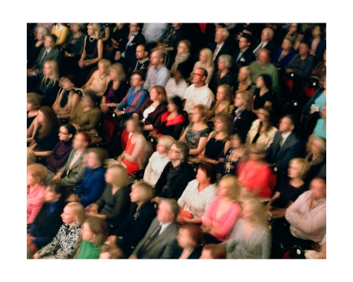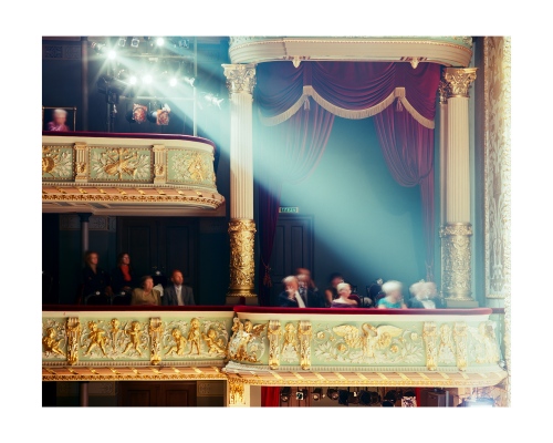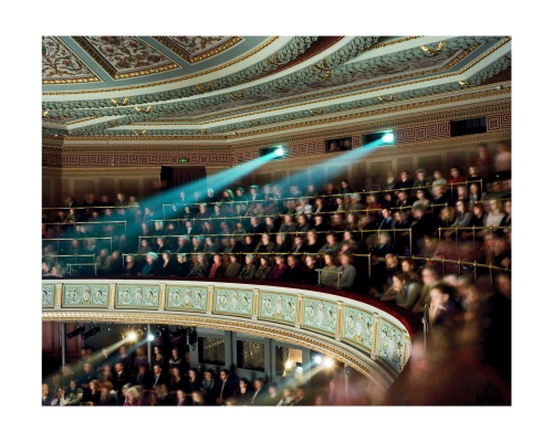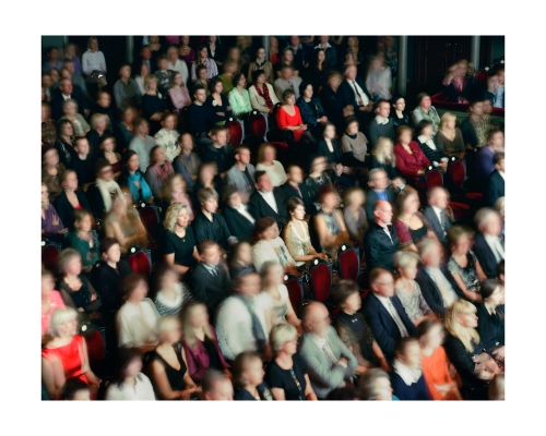 Opera was once seen as the exclusive reserve of aristocracy, a polite social occasion or an event to attend to affirm your cultural capital as a member of a social elite. Iveta Vaivode’s images tell a different story of intense participation by a more heterogeneous audience in a drama unfolding out of the frame. She watches the watchers, much as painters like Edgar Degas or Walter Sickert did at the music hall a hundred years ago. The long exposures she employs render the subject in a high contrast impressionistic way, like Édouard Manet, but instead of Baudelaire’s Flaneurs, Vaivode sees a more stratified contemporary audience. From box to balcony to stalls the make-up of the spectators clearly differs, but the difference from seat to seat is equally enthralling as many people sit virtually stock-still for the entire 45 minutes of the performance & exposure, whilst others move around to the point of visual extinction. Some sit forward in their seats wringing their hands as the narrative grips them, whilst others coolly recline, arms folded.